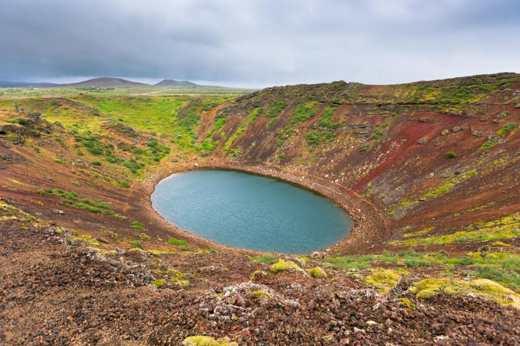 Krater ma około 55 metrów głębokości, 170 metrów szerokości i 270 metrów długości, a jego doskonale zachowane zbocza pozwalają odwiedzającym zejść na dół i podziwiać jezioro z bliska. Uważa się, że Kerið powstał po opróżnieniu komory magmowej pod wygasłym wulkanem, co doprowadziło do zapadnięcia się stożka i utworzenia dzisiejszej formacji. Jest to jedno z najbardziej dostępnych i fotogenicznych miejsc na Islandii, idealne zarówno na krótki spacer, jak i niezapomniane zdjęcia w otoczeniu unikalnej, surowej przyrody.