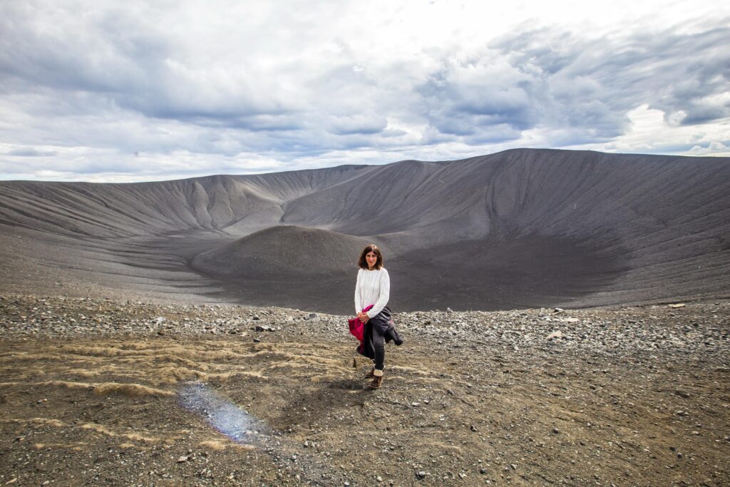 Wulkaniczne wzgórze o charakterystycznym kształcie stożka, Hverfjall to jedno z najbardziej imponujących miejsc w Islandii. Wznosi się nad okolicą, oferując spektakularny widok na otaczający krajobraz, w tym wulkaniczne pola lawowe i jeziora. To doskonałe miejsce na wędrówki, które pozwala poczuć potęgę islandzkiej natury i zobaczyć kraj z zupełnie innej perspektywy.